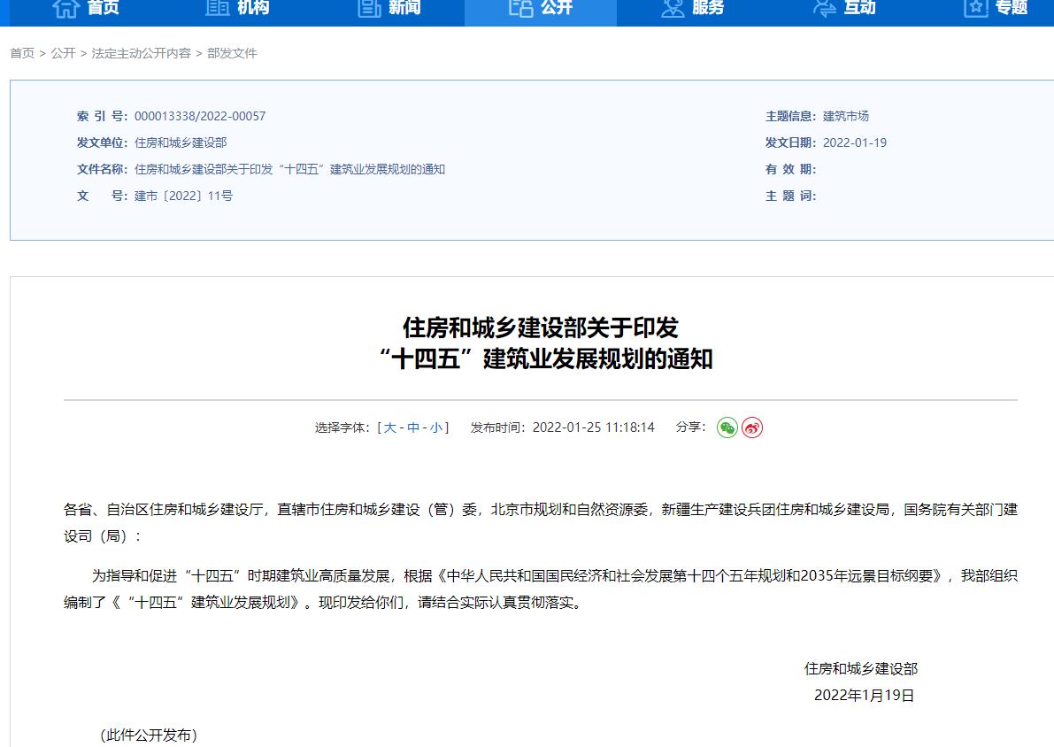 “十四五”建筑業(yè)發(fā)展規(guī)劃 [閱讀全文]